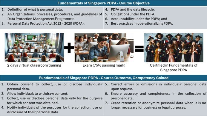 Training on Singapore PDPA Fundamentals will equip participants with an overview and understanding of the key legal and regulatory requirements of the PDPA and help them support Panasonic's compliance with Singapore PDPA.